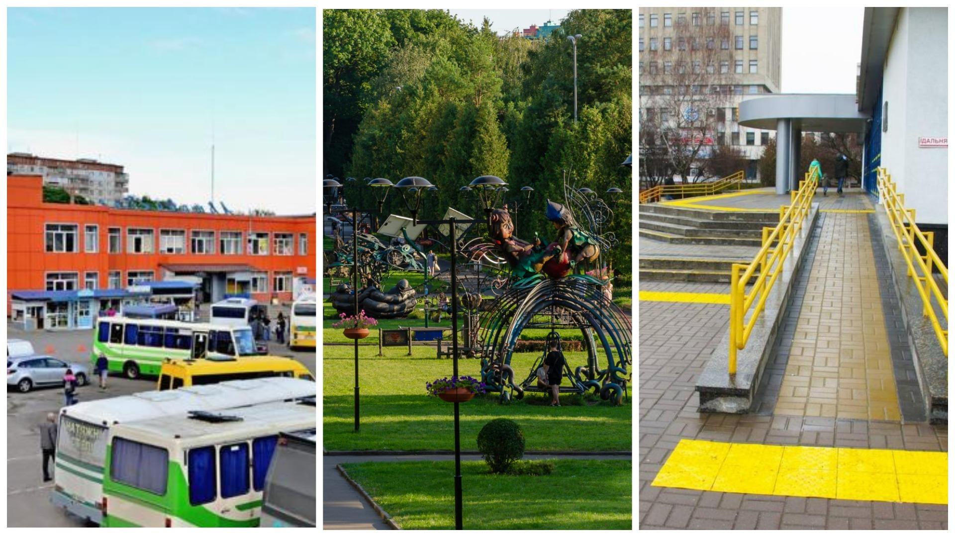 Фото локацій з Рівного: автовокзал, алея кованих скульптур, безбар’єрний простір біля місцевого ЦНАПу
