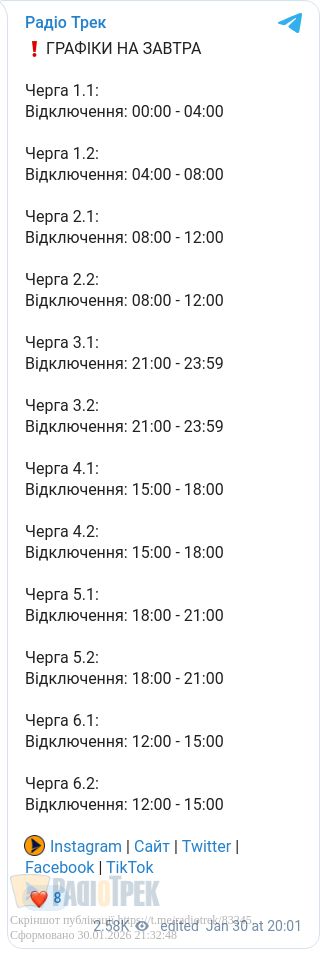 У випадку аварій графіки діяти не будуть