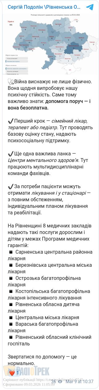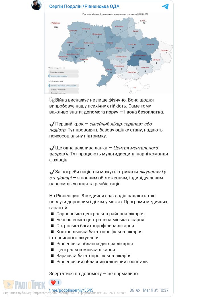 8 медзакладів Рівненщини надають безоплатну допомогу з ментального здоров’я. Звернутися можна через свого сімейного лікаря.