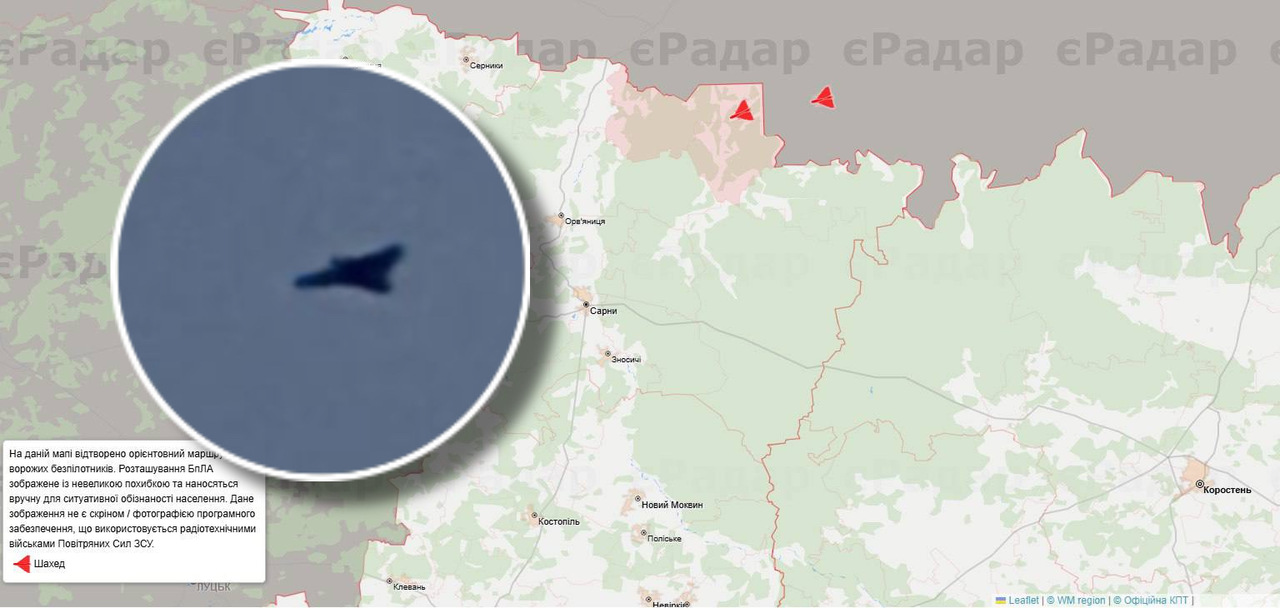Спершу моніторингові канали повідомили про один безпілотник, що рухався у бік Сарн.