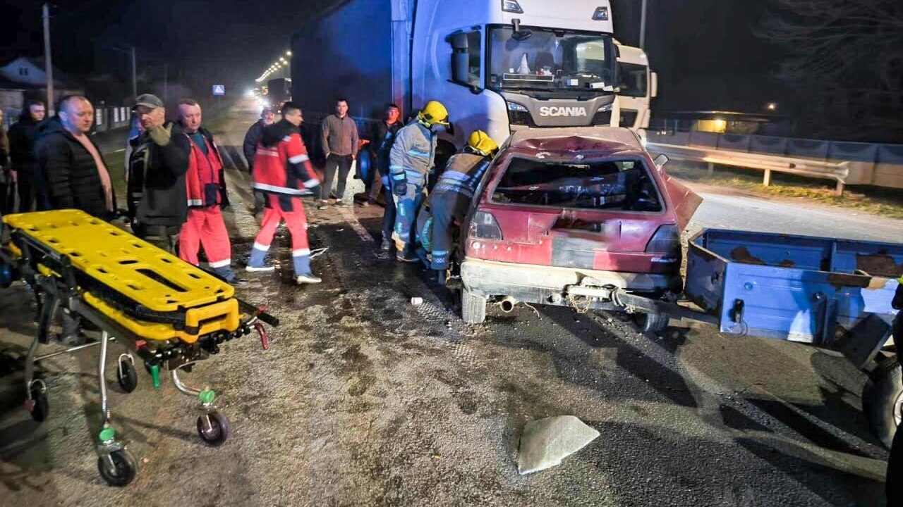 Рятувальники деблокували 50-річного водія легковика, який опинився заблокованим у розтрощеному автомобілі.