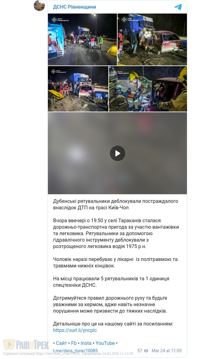 Чоловік отримав політравму та травми нижніх кінцівок і наразі перебуває у лікарні.