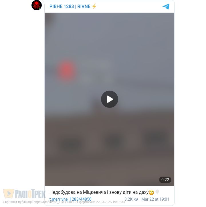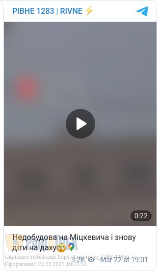 У Рівному на даху недобуду помітили двох неповнолітніх. Йдеться про закунуте будівництво неподалік РДГУ на вулиці Пластова.