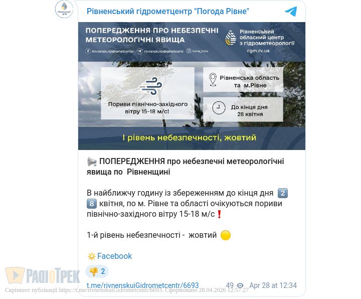 Це І рівень небезпеки, «жовтий», – попереджають синоптики Рівненського обласного гідрометцентру.