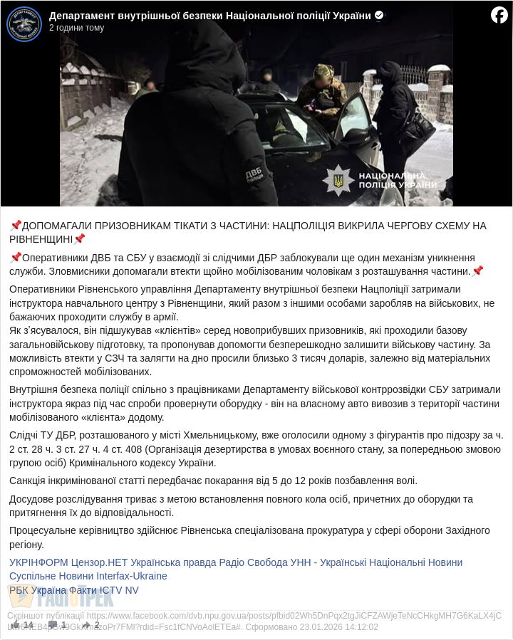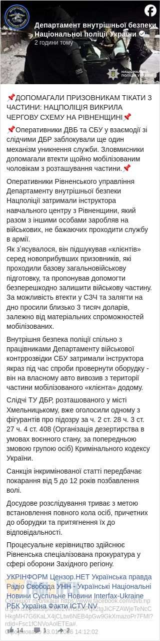 За інформацією департаменту внутрішньої безпеки поліції, він разом із спільниками пропонував мобілізованим залишити військову частину.