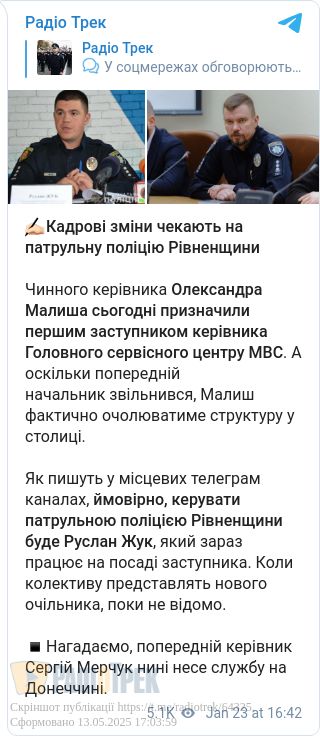 Відомо, що з 2021 року він працював на аналогічній посаді у Чернігівській області. Додамо, що фактично без керівника патрульна поліція області була з січня, оскільки попереднього очільника Олександра Малиша призначили першим заступником керівника Головного сервісного центру МВС.