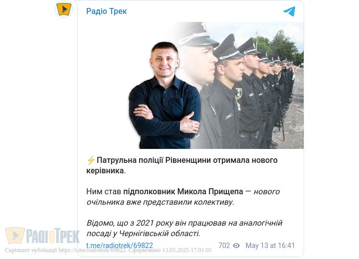 Патрульна поліції Рівненщини отримала нового керівника. Ним став підполковник Микола Прищепа — нового очільника вже представили колективу.