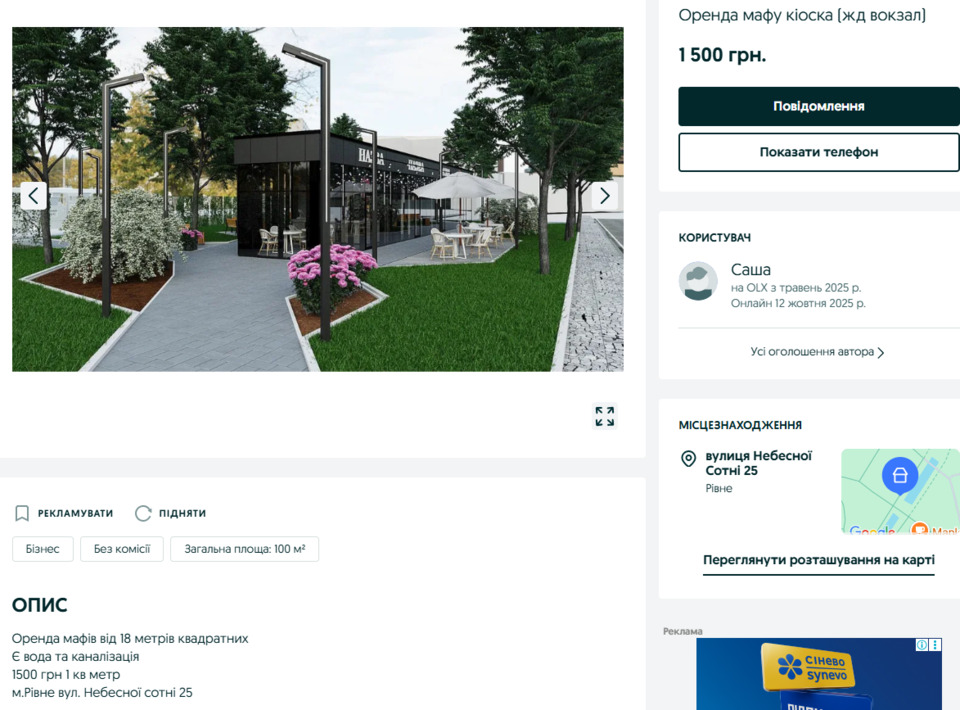 Як видно з оголошення на сайті ОLX, у кіосках можуть облаштувати торгові зони і кав’ярні.