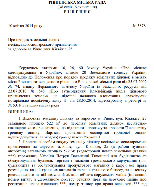 А вже у 2014 році через сесію цю ділянку включили до переліку земель, які підлягають продажу. А лише торік на неї здійснили державну реєстрацію права власності.