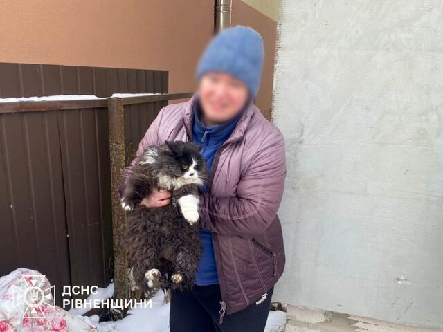 На місце події прибули співробітники ДСНС, які за допомогою спеціального спорядження обережно підняли кота на поверхню.