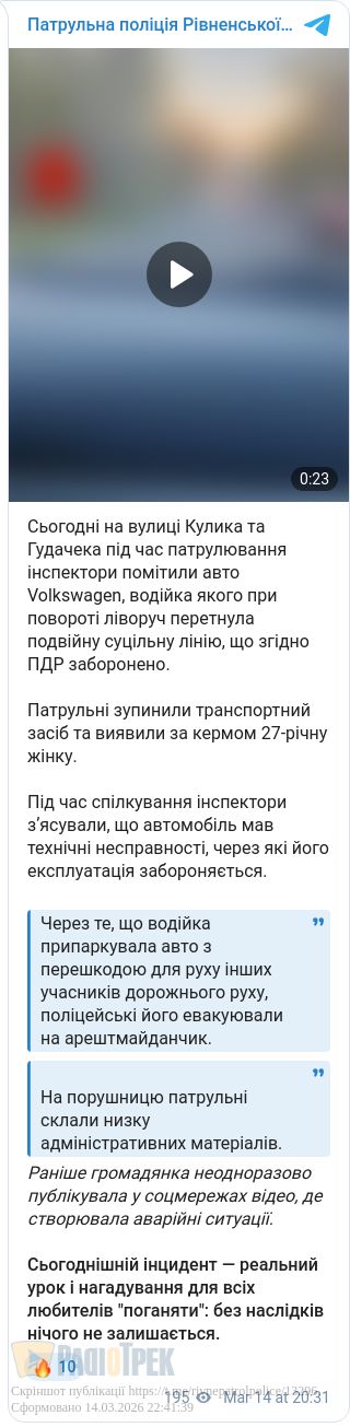 Раніше громадянка неодноразово публікувала у соцмережах відео, де створювала аварійні ситуації.