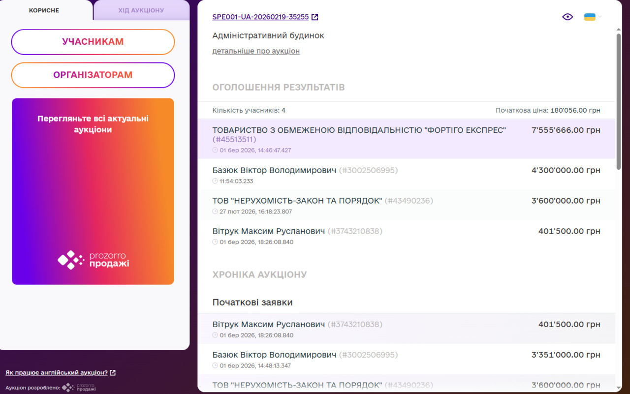 Загалом на торгах було 4 учасники.