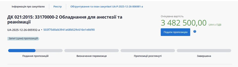 Аукціон із визначення підрядника відбудеться 31 грудня. Спецобладнання закуповують на весь 2026 рік.