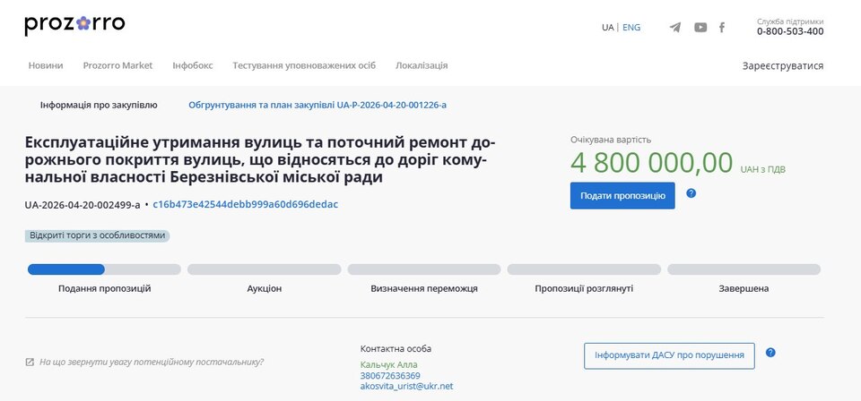 Новий тендер вже на Прозорро
