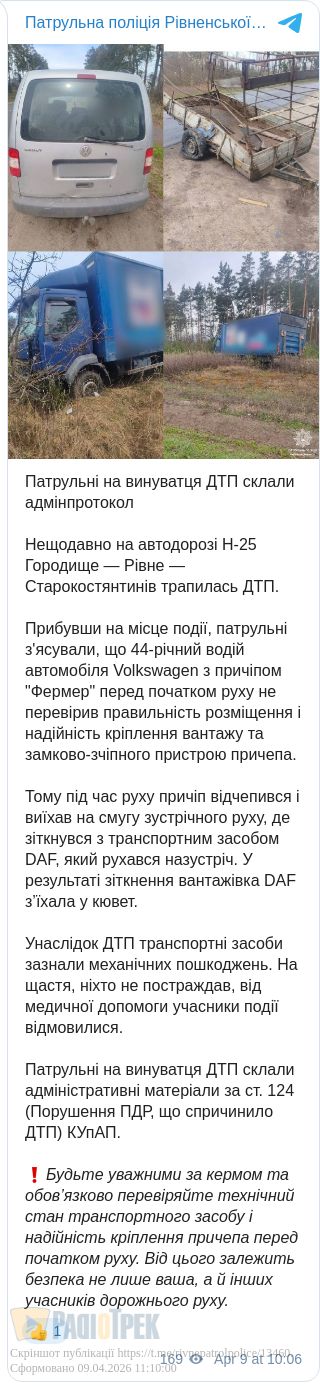 Нещодавно у 44-річного водія Volkswagen із причепом на дорозі відчепився причіп і виїхав на зустрічну смугу, де зіткнувся з вантажівкою DAF. Внаслідок та з’їхала у кювет.