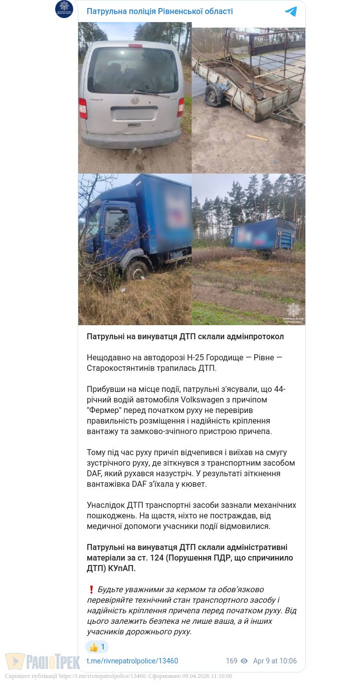 Нещодавно у 44-річного водія Volkswagen із причепом на дорозі відчепився причіп і виїхав на зустрічну смугу, де зіткнувся з вантажівкою DAF. Внаслідок та з’їхала у кювет.
