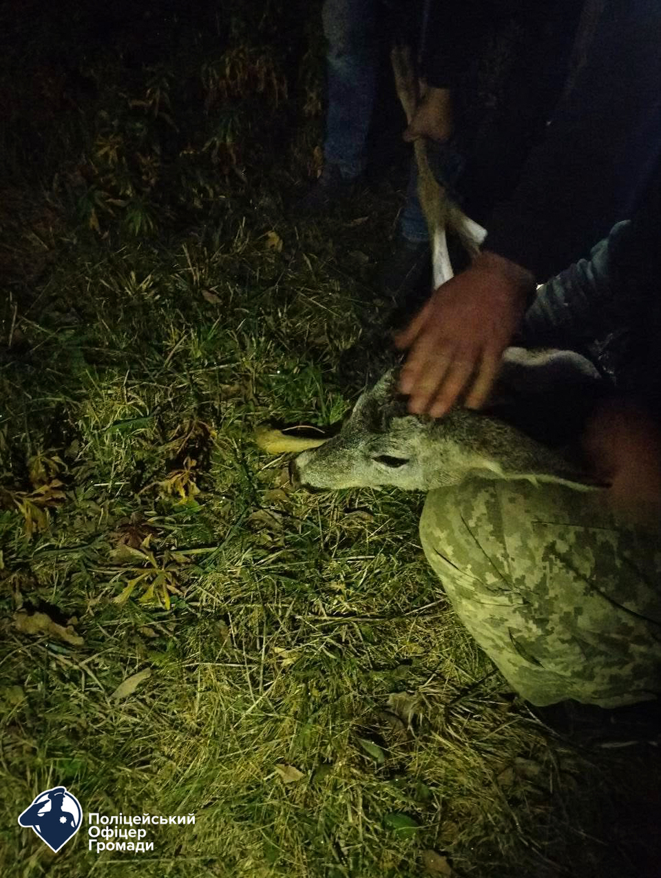 Вчора, близько 22-ї години, поліцейський офіцер Мізоцької громади Богдан Драган отримав телефонний дзвінок від місцевої жінки: до її господарства, розташованого поруч із лісом, вийшла поранена косуля.