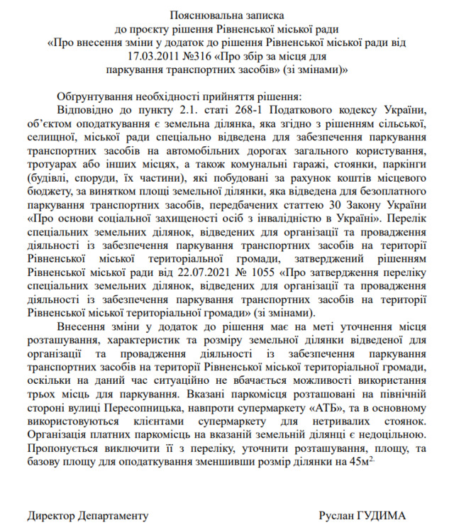 Тож цю ділянку можуть виключити з переліку спеціальних місць для паркування.