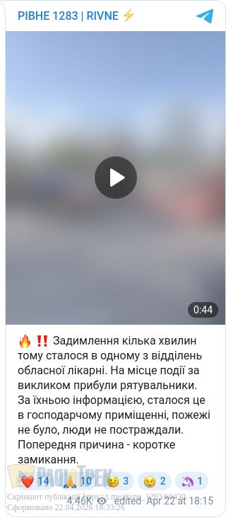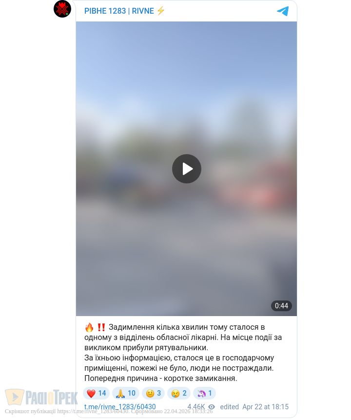 У обласній лікарні Рівного зафіксували задимлення, через що на місце події оперативно прибули щонайменше сім пожежних машин.
