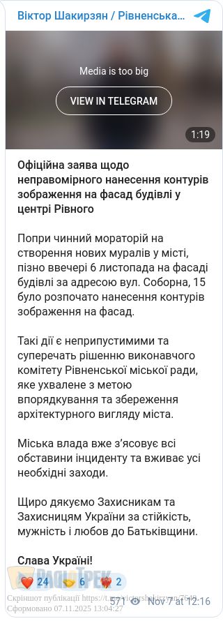 Контур зображення навели на стіну за допомогою проектора. Роботи зупинили, адже у місті діє мораторій.