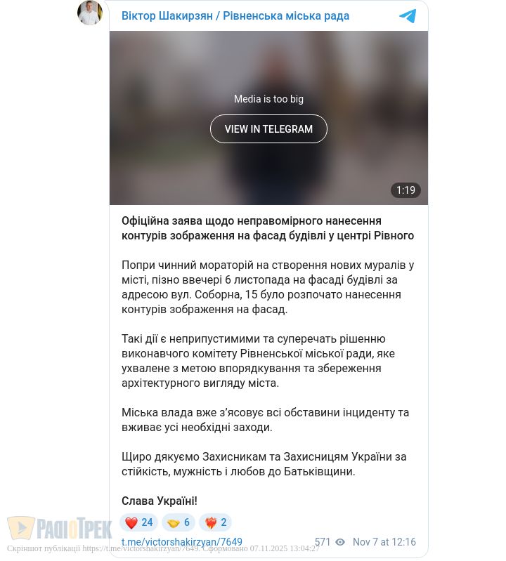 Контур зображення навели на стіну за допомогою проектора. Роботи зупинили, адже у місті діє мораторій.