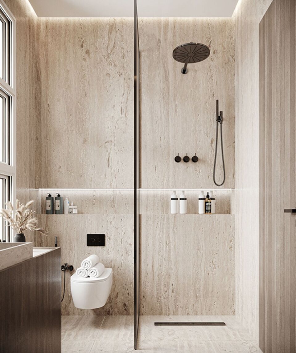 Менше швів — менше умов для грибка й плісняви. Саме тому в Італії, Іспанії, Данії та Франції слеби стали стандартом у преміальних ремонтах ванних кімнат.