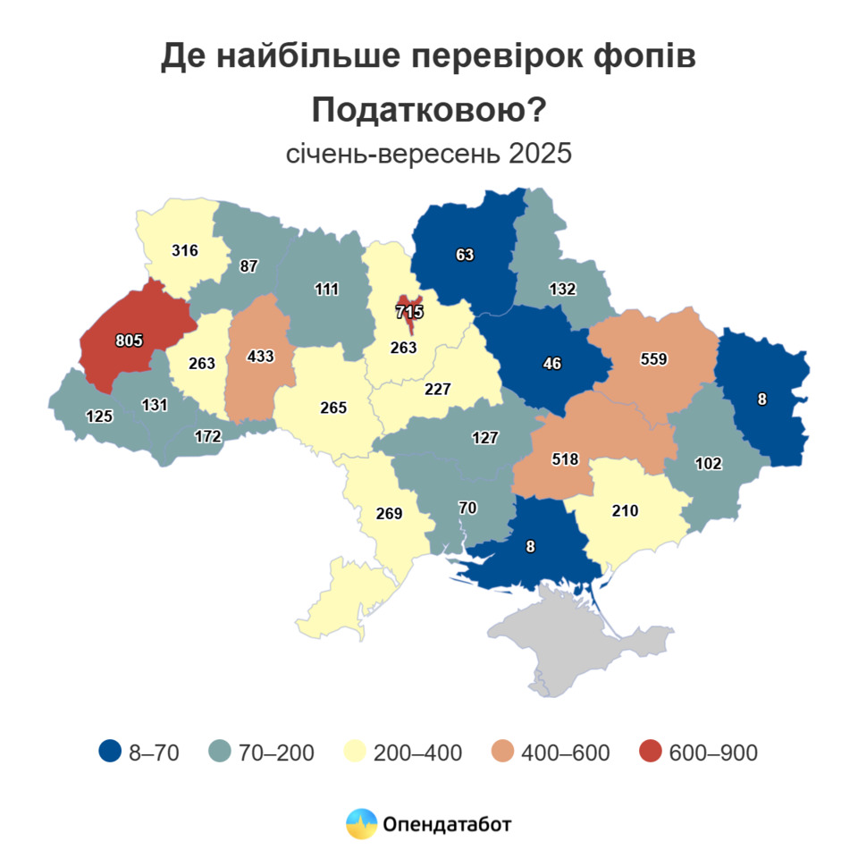 Загалом, за даними аналітичної платформи Опендатабот, в державі податкова здійснила понад шість тисяч перевірок — це на 12% більше, ніж торік. І донарахувала 5,98 млрд грн підприємцям за три квартали 2025 року.