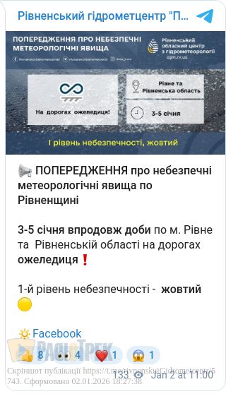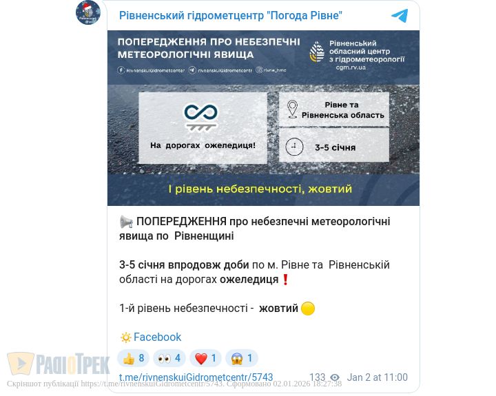 Відзавтра, 3 грудня, у Рівному та області буде ожеледиця на дорогах.