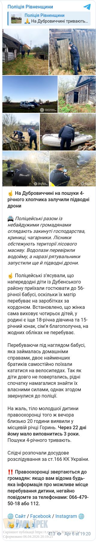 Правоохоронці також повідомили, що молодшому братику, якого вчора знайшли у річці Горинь скоро мало виповнитися 3 роки.