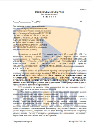 Православна церква України у Рівному планує збудувати нову церкву. Релігійна громада Святого Миколая Чудотворця звернулася до міської ради з проханням надати дозвіл на відведення земельної ділянки на вулиці Захисників Маріуполя.