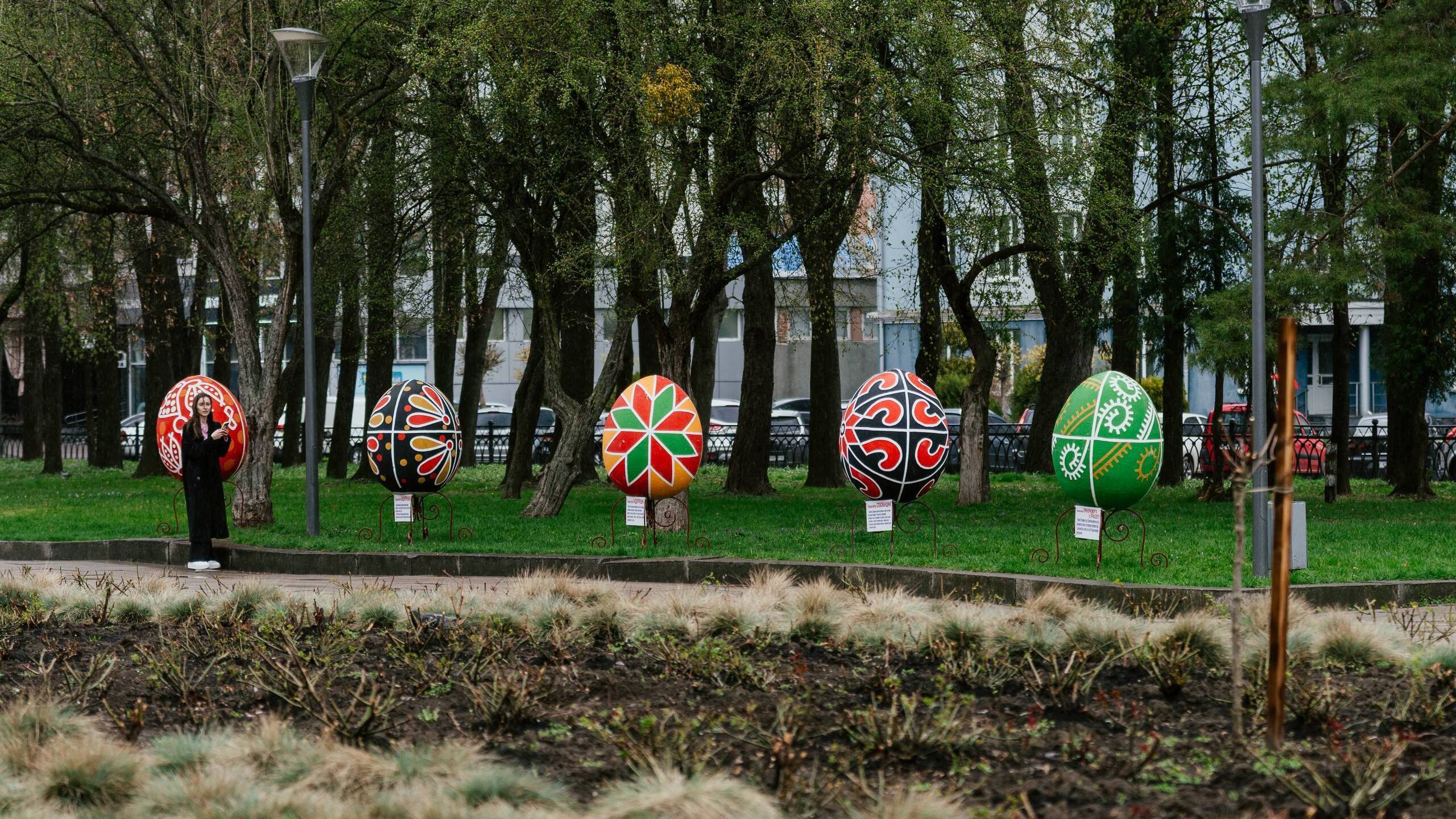 «Писанковий сад» встановили сьогодні у Рівному. 49 великих великодніх яєць розмістили за кінопалацом «Україна», на Чайчиній алеї.