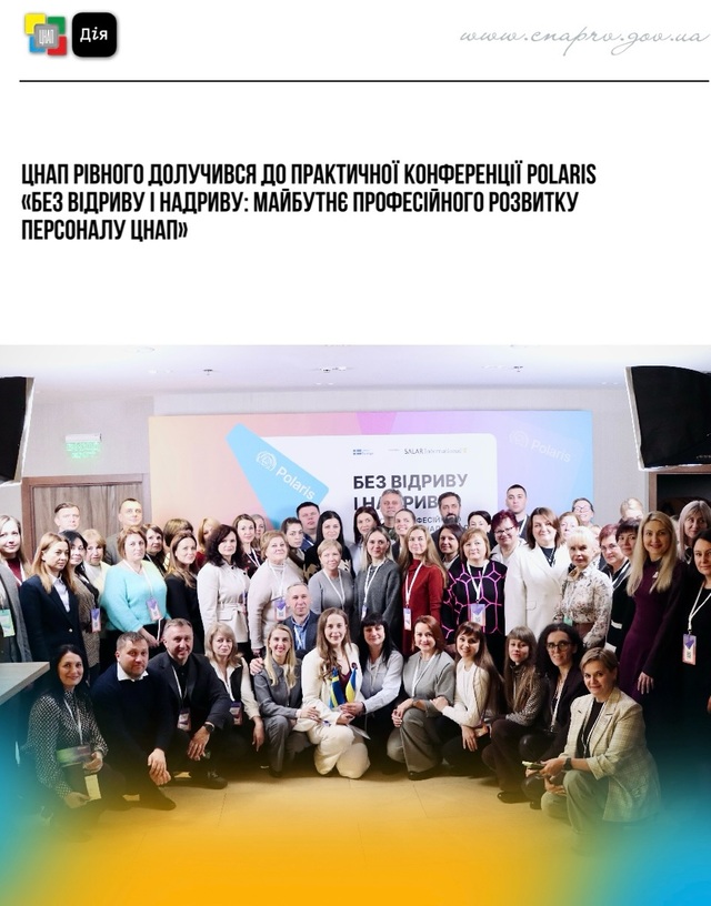 ЦНАП Рівного долучився до практичної конференції Polaris у Києві. Під час заходу обговорили майбутнє професійного розвитку працівників центрів надання адмінпослуг, ключові виклики та шляхи підвищення якості сервісів.