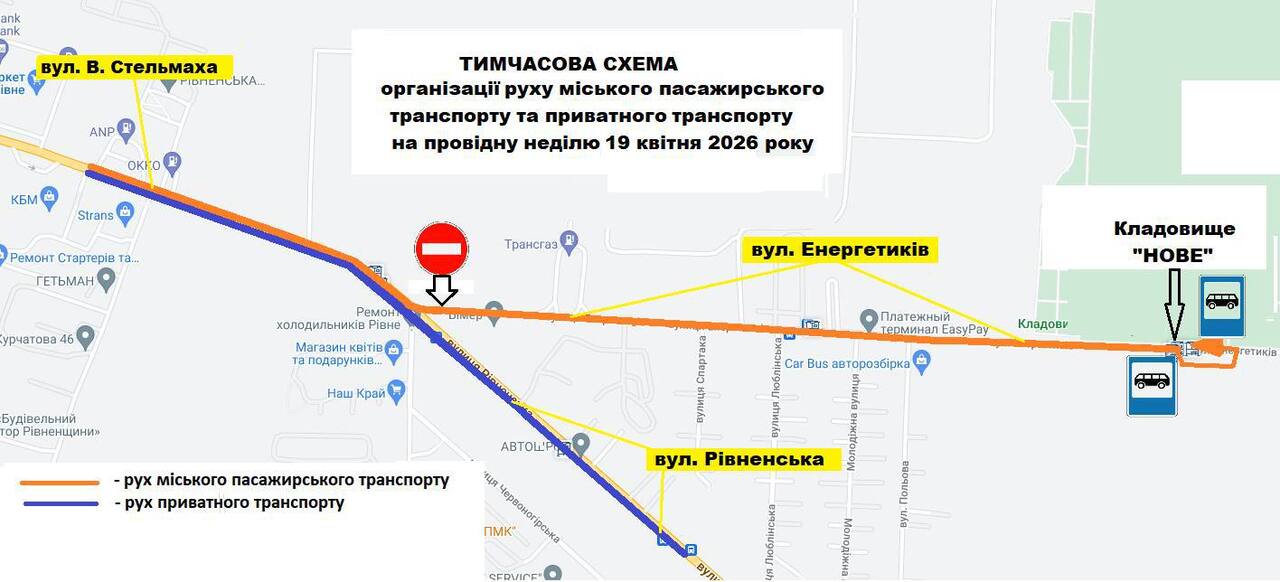 18 квітня 2026 року з 06:00 до 18:00 та 19 квітня 2026 року з 06:00 до 15:00 проїзд приватних авто до кладовища «Нове» буде обмежено. Виняток зроблять для громадського транспорту.