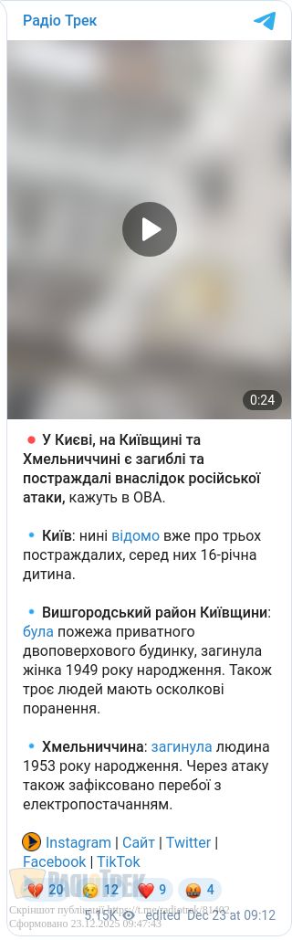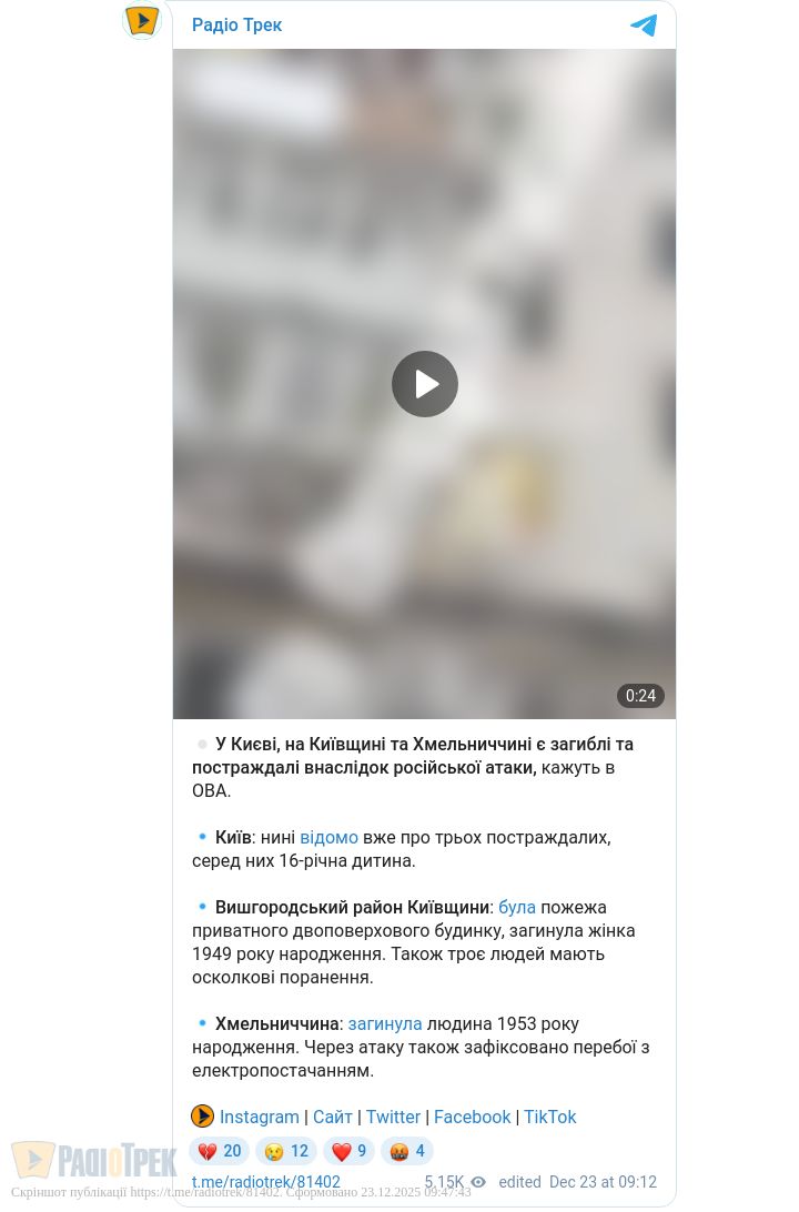 - Ще одна дитина та дорослий перебувають у лікарнях. Загалом відомо про 5 постраждалих і одного загиблого внаслідок обстрілів Житомирщини.