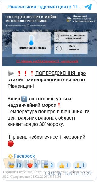 Найближчої ночі Рівненщину накриють надзвичайні морози.