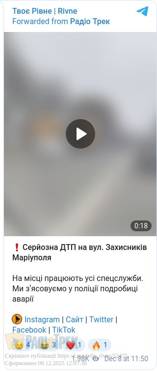 Серйозна ДТП сталася на вулиці Захисників Маріуполя у Рівному.