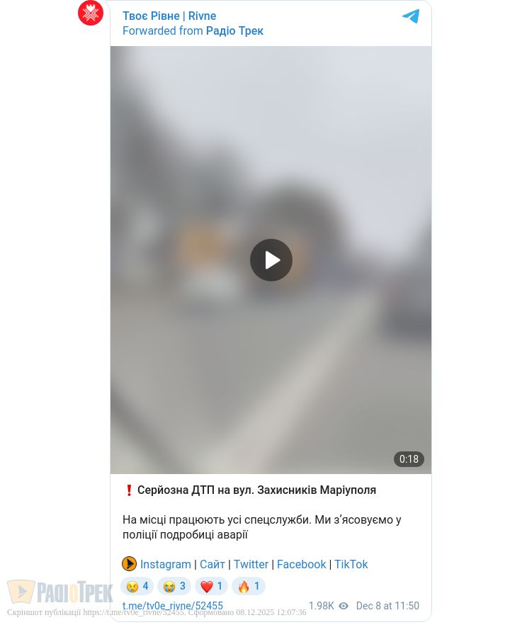 Серйозна ДТП сталася на вулиці Захисників Маріуполя у Рівному.