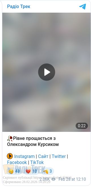Редакція Радіо ТРЕК висловлює щирі співчуття родині Олександра Курсика.