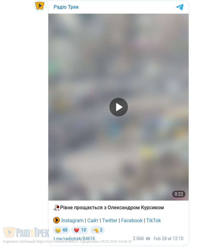 У Рівному відбулося прощання з депутатом, журналістом і військовослужбовцем Олександром Курсиком, який став на захист України на початку повномасштабного вторгнення.