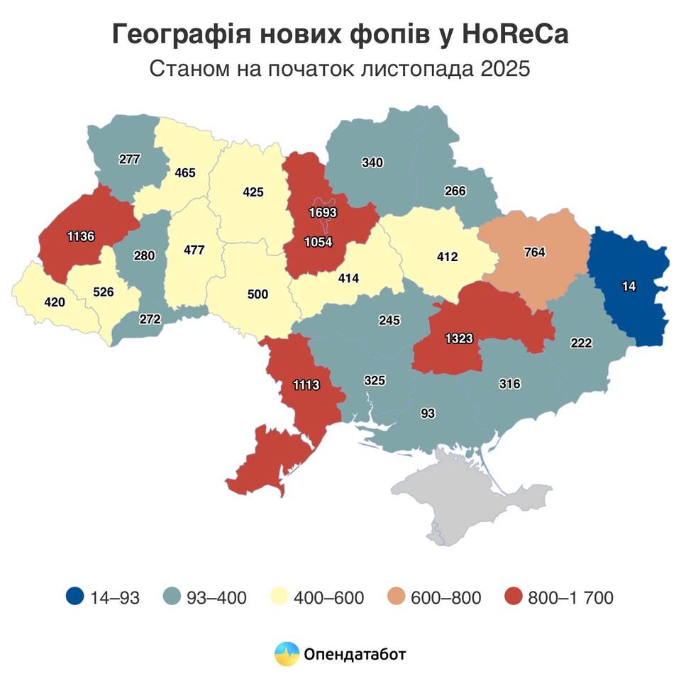 Водночас по країні понад 10 тисячі підприємців закрилися, а приріст нових кафе та ресторанів скоротився удвічі.
