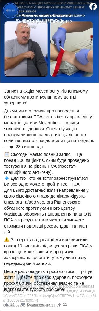Днями ми оголосили про проведення безкоштовних ПСА-тестів без направлень у межах ініціативи Movember — місяця чоловічого здоров’я.