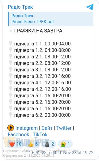 Графіки відключень електроенергії будуть діяти сьогодні на Рівненщині. Світло вимикатимуть для споживачів усіх черг.