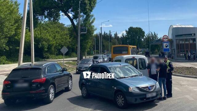 На Чорновола біля заправки у Рівному сталася ДТП. Там зіткнулися два легковики. На місці події працюють поліцейські.