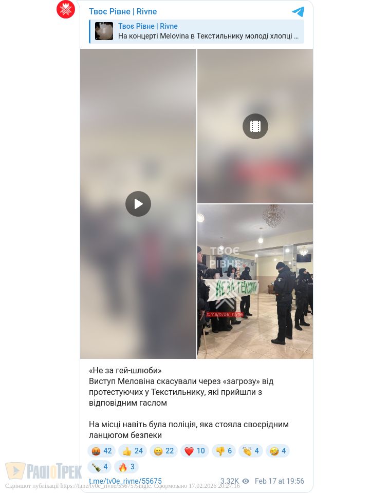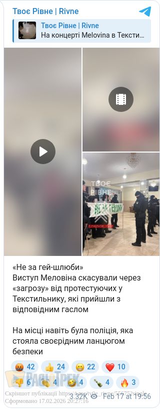 Виступ Меловіна скасували через «загрозу» від протестуючих у Текстильнику