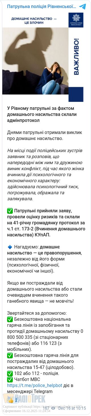У Рівному чоловік поскаржився поліцейським на жінку-абʼюзерку. Виклик про домашнє насильство на лінію 102 надійшов днями. Заявник розповів, що між ним і дружиною виник конфлікт, під час якого жінка здійснювала психологічний тиск, погрожувала, ображала та залякувала його.