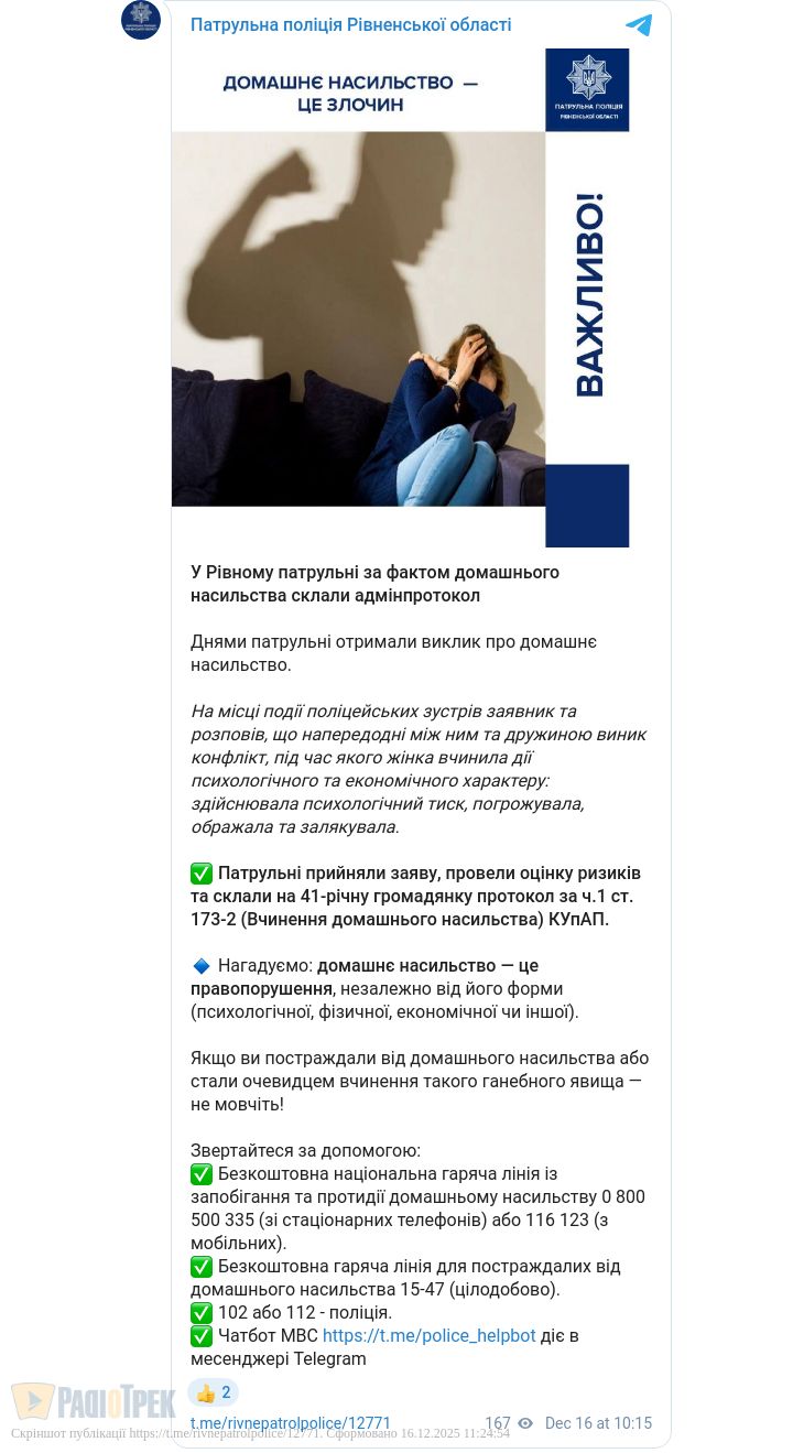 У Рівному чоловік поскаржився поліцейським на жінку-абʼюзерку. Виклик про домашнє насильство на лінію 102 надійшов днями. Заявник розповів, що між ним і дружиною виник конфлікт, під час якого жінка здійснювала психологічний тиск, погрожувала, ображала та залякувала його.