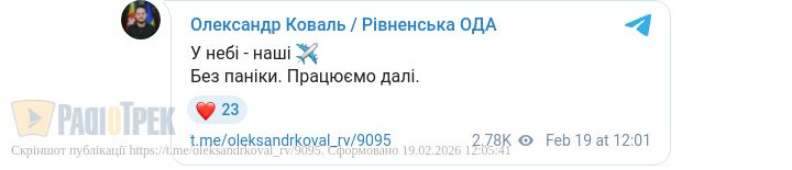 Голова Рівненської ОВА Олександр Коваль написав на своєму телеграмі таке: