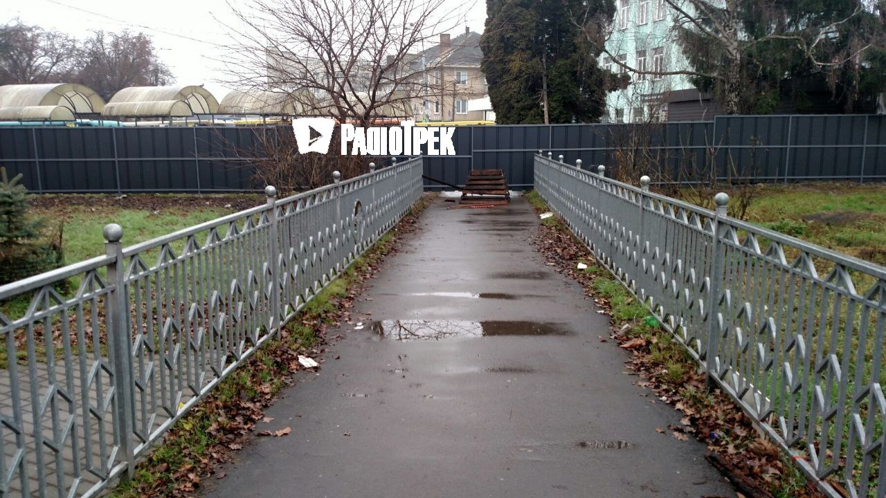 Станом на 22 грудня металопрофіль навпроти проходу демонтували, але металева конструкція досі є і перешкоджає проходу пішоходів.