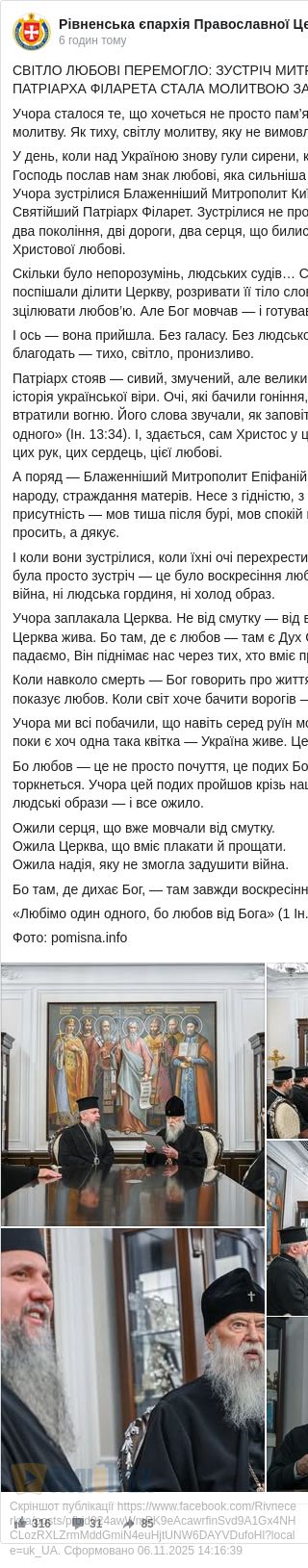 Не виключено, що в цей день Митрополит Епіфаній та Патріарх Філарет приїдуть до Рівного разом