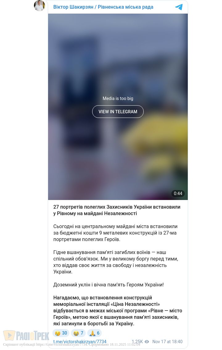 На Майдані Незалежності у Рівному доповнили меморіальну інсталяцію «Ціна Незалежності». Там встановили ще 27 портретів Героїв, які загинули у війні проти росії, захищаючи свободу та територіальну цілісність України.